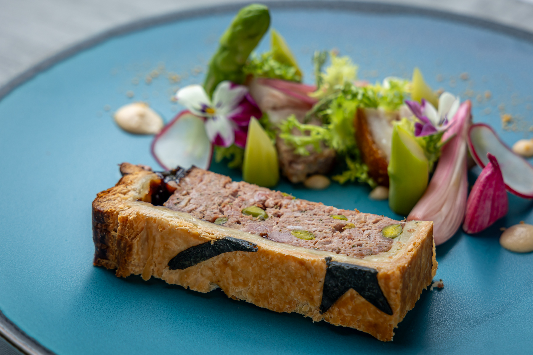 徳之島産皮付豚肉のパテアンクルートとコンフィ