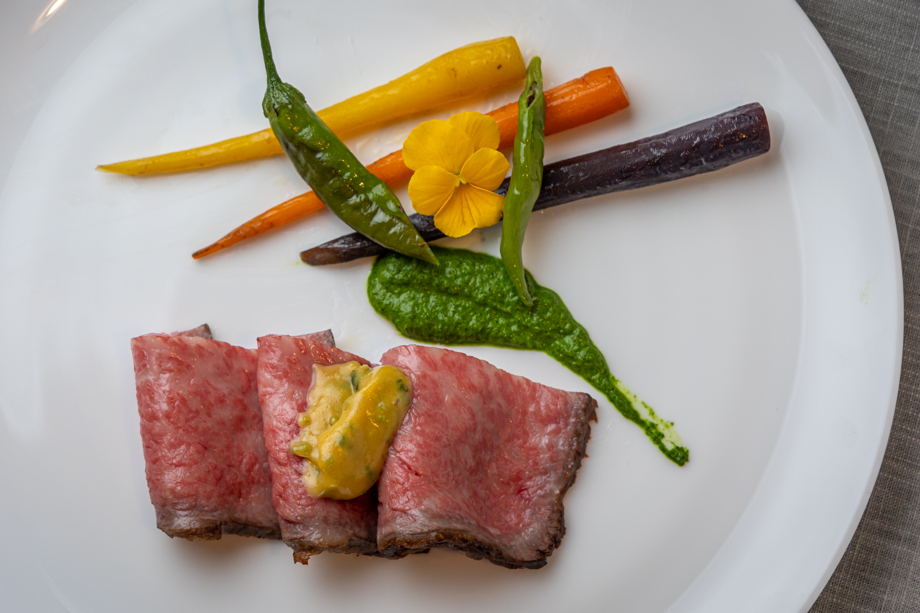 徳之島生まれ牛ロース肉のグリル そてつ味噌とマスタード風味