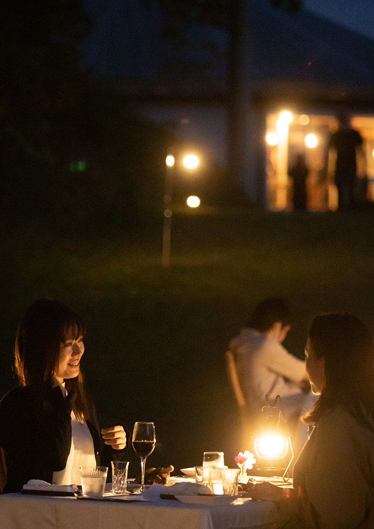 本ツアーでは、レストランでフルコースを楽しんでいただいた後は、隣接する芝生広場へ移動し、パノラマの星の絶景が広がるなか、季節のスイーツ&ドリンクを楽しんでいただきます。ペンションオーナーによる神秘的な星トークを聴きながら、春夜の柔らかな空気を感じ、心ゆくまでゆったりとした時間をお過ごしください。